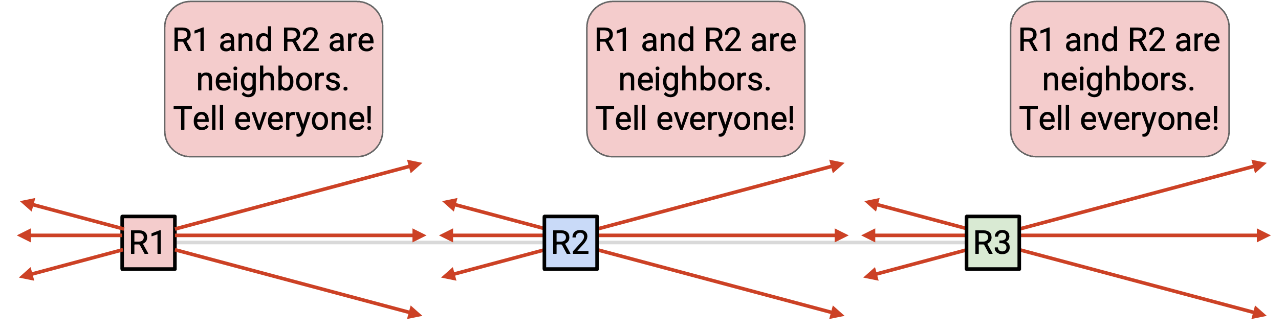 at the exact same packets traveling through three different links.